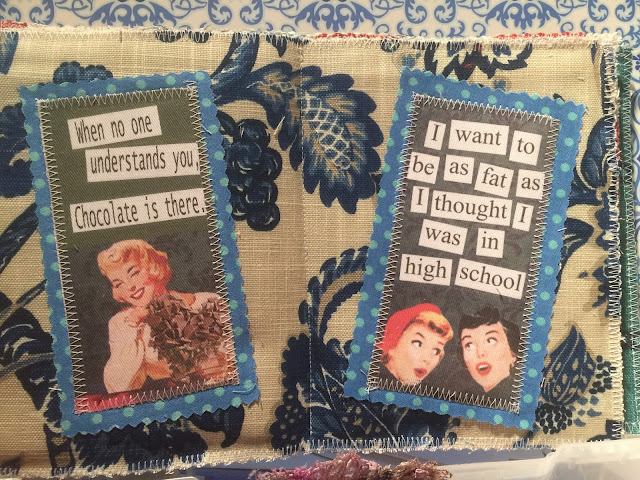 I'm a nervous Nellie, prepping for my first craft fair next week. FABMO is the amazing organization that recycles designer samples so we may 'repurpose' them, rather than adding to the landfills!